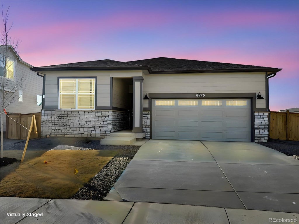 Welcome home to the charming simplicity of the Primrose Ranch Floor plan by Meritage Homes! This delightful residence offers 1,619 square feet of thoughtfully designed living space, boasting 3 bedrooms, 2 bathrooms, and a covered back patio that beckons you to unwind in style while taking in breathtaking mountain views. Step inside, where form meets function in a space carefully crafted for modern living. The Primrose seamlessly blends comfort and efficiency, providing a haven for your everyday life. Main Floor Laundry with Washer and Dryer for added convenience. Primary Suite with a Walk In Shower, Dual Vanity, Walk In Closet. Gourmet Kitchen with Quartz Counters, Tile Backsplash, Gas Range & Side by Side Refrigerator with in door ice/water. Enjoy the covered back patio just off your dining space for ease of grilling or al fresco dining or enjoy that morning cup of joe as you enjoy the sunrise each morning. Meritage Homes goes beyond the basics by incorporating energy efficiency features like advanced framing and spray foam insulation. Large unfinished basement ready for your future expansion with rough in plumbing, radon mitigation system, sump pump. Experience a home that not only surrounds you with comfort but also contributes to a sustainable and eco-friendly lifestyle. Located in Commerce City, this home offers the perfect balance – away from the hustle and bustle of city life, yet still close enough to Denver and the slopes for those seeking adventure. Discover the charm of Buffalo Highlands, from shopping to outdoor activities, all in your own backyard. Take the next step toward making the Primrose your own oasis. Schedule your showing today! This home qualifies for a below-market fixed interest rate with Meritage Homes' preferred lender for a limited time. Terms and conditions apply.