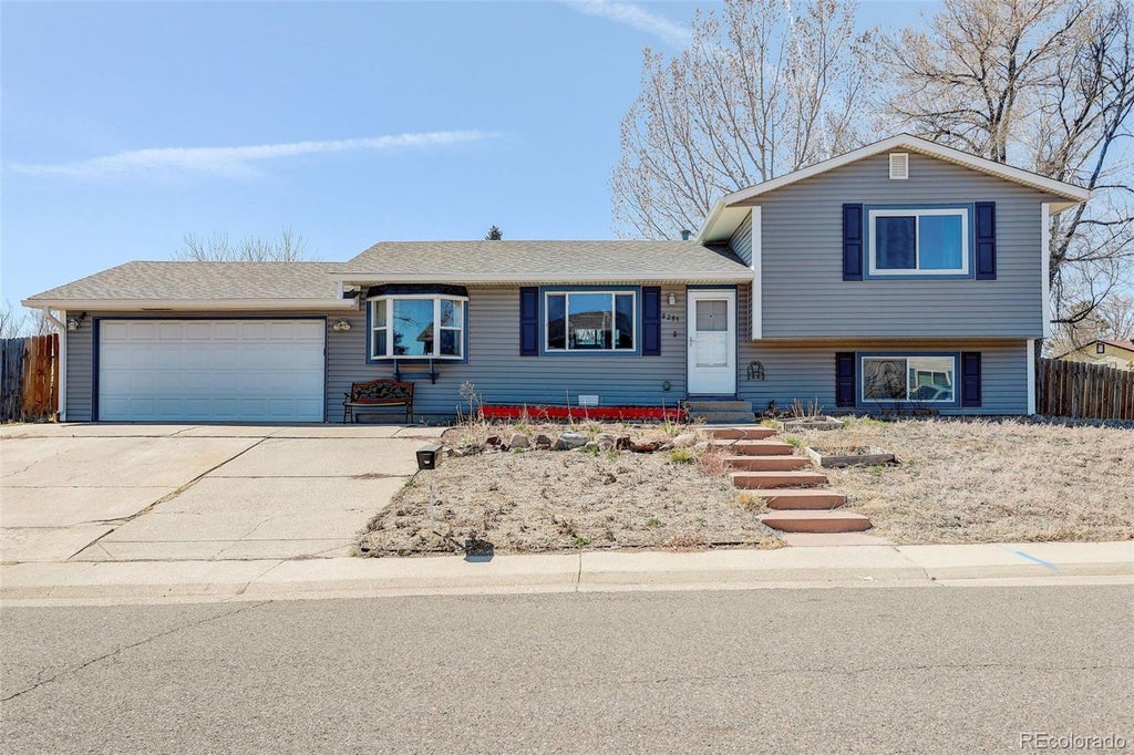 Charming 4 bedroom/2 bath, tri -level home situated on a large corner lot in the Coronado Subdivision. Enjoy cooking in your oversized kitchen adjacent to a sprawling backyard patio; and, entertain in the spacious family room complete with laminate flooring and built-in entertainment center. Two bedrooms on the lower level are nicely separated from the Primary and an additional guest room on the upper level. Two updated baths, a laundry area, storage closet, expansive patio and two car garage complete the home. Additional perks....Newer roof, gutters, carpet, A/C, siding, some sliding windows, bathroom updates, radon mitigation and sewer system enhance this home. Close proximity to I 25, the Park n Ride, Groceries and Eateries! Call this home yours today!