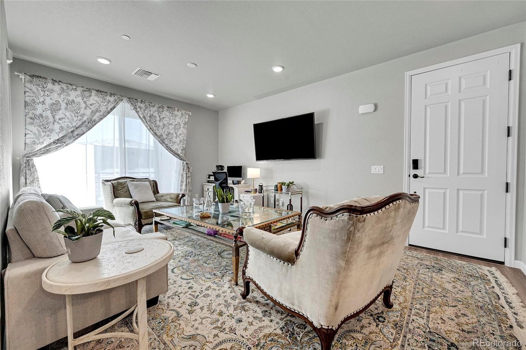 Welcome to your contemporary and convenient two-bedroom, two-bathroom lock and leave home. Newly built in 2024, this condo boasts an open floor plan with nine-foot ceilings and expansive, oversized windows. The interior features elegant granite countertops, a spacious kitchen island, top-of-the-line stainless steel appliances, including a refrigerator and gas range, a full-size stackable washer and dryer, stylish luxury vinyl plank flooring, modern neutral cabinetry, central air conditioning, and a tankless hot water heater. ADDED BONUS- the living room and bedroom TV's are included! Located on the second floor of a twenty-unit building where you will never have to worry about parking with your own attached over-sized garage with direct access to the home. The garage features an additional refrigerator, freezer, storage/tool boxes, dedicated (220V) electricity to add your EV Charger AND a an electric chair lift on the stairs for those that might need added accessibility. Enjoy easy access to the light rail with Pena Station less than a mile away. This prime location also puts you near the GVR Recreation Center, GVR Golf Club, and a variety of new restaurants, brew pubs, and schools. Living is easy in this comfortable home with easy access to I-70, E-470 and DIA.
