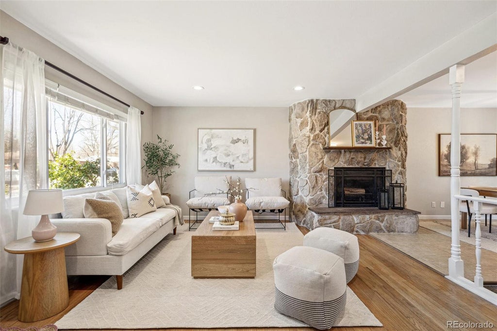 Back on the market! Enjoy a spacious, open floor plan and five conforming bedrooms total in this sunny brick ranch, perched on a corner lot! The updated kitchen shines with white quartz countertops and an open layout that connects the dining and living areas. You'll find hardwood floors, adding to the charm of the main living space. The third bedroom, with elegant glass French doors, is perfect for a home office or den. Downstairs, the finished basement offers two additional bedrooms (with new egress windows in 2024), a guest bathroom, and a spacious family room. An attached garage provides plenty of storage for all your Colorado adventure gear. Conveniently located near Arvada Ridge Station, Olde Town Arvada, parks, and restaurants, this home offers the perfect blend of comfort and accessibility.