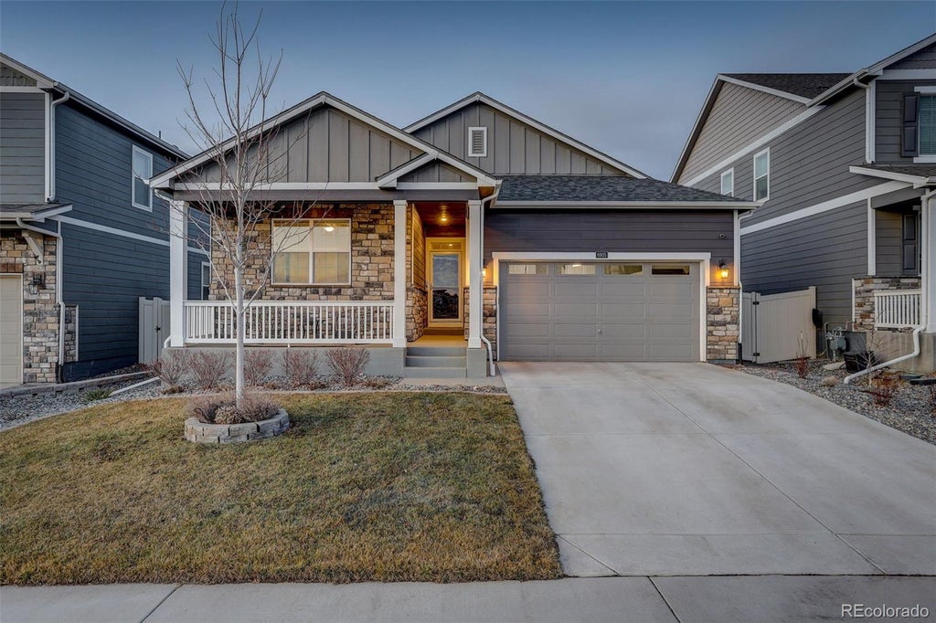 Move-in ready with over $75K in upgrades showcasing the owner’s commitment to maintaining this home! One of the unique features of this property is the unobstructed view across the street, which overlooks a serene park with no neighboring homes, ensuring privacy and gorgeous, uncompromising views. Take in beautiful mountain views from your peaceful, south-facing covered front porch—perfect for morning coffee or evening relaxation. Step inside the open-concept kitchen and living area, which are designed for effortless entertaining. The true chef’s kitchen is a showstopper, featuring rich dark wood cabinetry, gleaming white stone countertops, a stylish tile backsplash, stainless steel appliances, and a spacious island perfect for meal prep or a quick meal before work or school. The kitchen seamlessly flows into the living area, creating an inviting space ideal for hosting friends and family all year long. The kitchen is thoughtfully designed to be the hub of the home, open to both the living room and dining room, and it offers glass door access to the backyard, making outdoor dining a breeze. Step outside, and you'll discover a backyard oasis waiting for you. Just steps from the backyard, you'll find access to a charming circular walking trail—perfect for a quick stroll, morning exercise, or a peaceful moment. Once the day is over, head to the primary suite, a true retreat featuring a spa-like en-suite with a double sink vanity and sleek glass door shower. The additional bedrooms are spacious and flexible ready to be whatever you need. Located just minutes from Saddleback Golf Course, schools, easy access to highways and shopping, and fantastic dining options, this home offers the perfect balance of tranquility and accessibility. Settle into this vibrant community for years to come and make this house part of your next exciting chapter in Frederick.