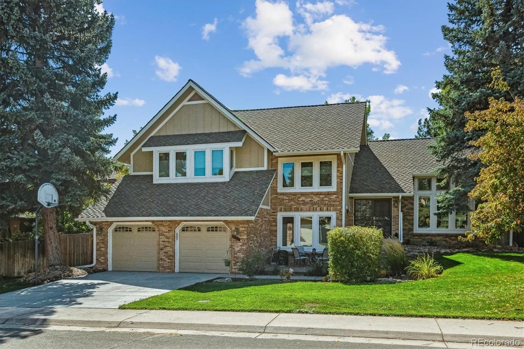 WOW! This remodeled and updated Hills at Piney Creek home is gorgeous! The owners have meticulously maintained this home, making it ready for a quick move-in. The exterior features a brand new driveway (concrete poured October, 2024), a brick wrap on the main level of the home, a new asphalt shingle roof, several brick paver and concrete patios (one covered), sodded front and back yards w/ sprinkler system, privacy fencing, and beautiful landscaping with mature trees, shrubs, and grasses. The interior features remodeled kitchen and bathrooms, new carpet, extensive hardwood flooring, vaulted ceilings throughout, and plenty of windows and skylights to let in the beautiful Colorado sunshine! The finishes are high-end with slab granite counters, stainless appliances, new contemporary metal railings, plantation shutters, and much more! The primary suite features a 5-piece remodeled bath with heated tile floors, a jet action tub, and a large shower with multiple shower heads. Plus you can relax on the primary suite's private 7x10 balcony! The finished basement has a bedroom, bath, media room, and a flex space that can be an exercise room, craft room, or additional office. The main office has hardwood flooring and a slider that exits to a covered patio. The home has Ting fiber optic so the internet is great! With 5 bedrooms, an office, 4 baths, and many other bonus areas, this home has all the room you will need and more! The Hills at Piney Creek has many amenities, including a community pool, tennis/pickleball courts, a playground, and a park/greenbelt area. The house is very private and site on a quiet cul-de-sac. The location is convenient to shopping and entertainment and has easy access to the DTC and DIA. Plus you get the award-winning Cherry Creek School District with an easy/quick commute to all school levels. This is the one!