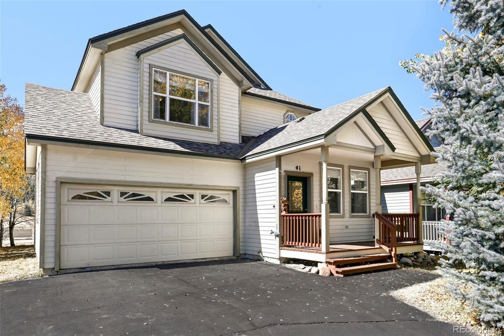 Nestled within the Farmers Grove community, this home showcases stunning mountain views. A covered front porch crafts a warm welcome, inviting residents into a bright living area centered by a cozy gas fireplace. The home chef is treated to an open kitchen boasting stainless steel appliances and warm wood cabinetry. Extend gatherings from a sunlit dining area outdoors to an expansive deck featuring picturesque views. Beyond, a private backyard sprawls with mature trees and lush landscaping. One of three sizable bedrooms, the primary is complemented by an en-suite bath with a double vanity. Upgrades include a new roof added in September 2024 and an attached, insulated 2-car garage with storage. Ideally situated along a bus route, this property backs onto school-district-owned vacant land and is located adjacent to the Summit County Recreational Pathway. Residents enjoy seamless access to world-class ski resorts at Breckenridge, Frisco, Copper Mountain, Silverthorne, Dillon and Keystone. House was one of the stick-built properties in neighborhood.