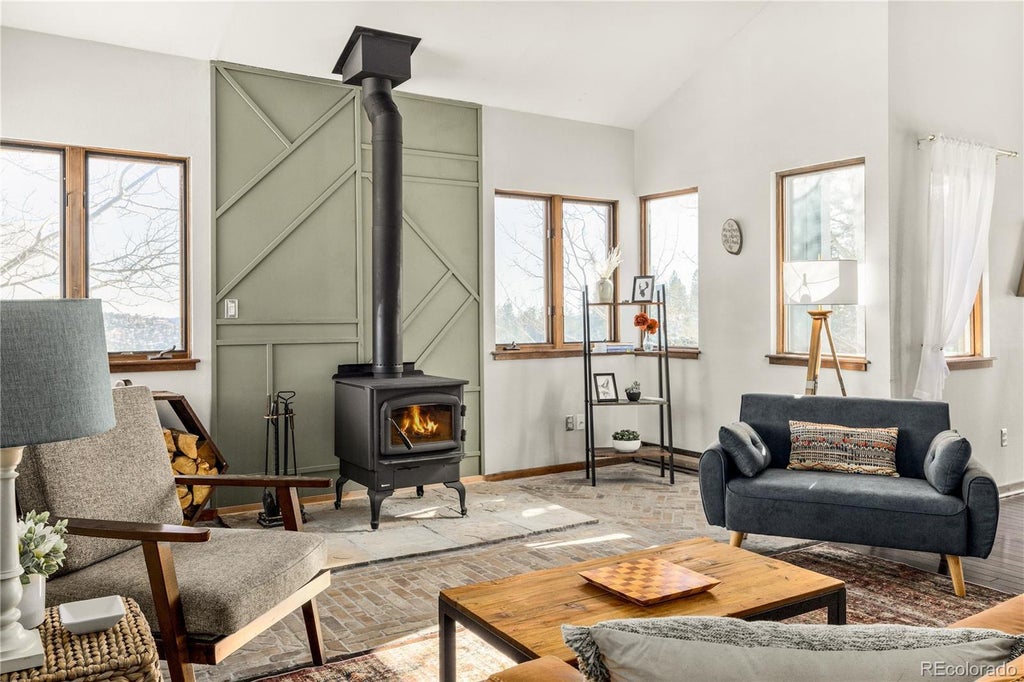 Welcome to this stunning Evergreen property, just minutes off of I-70 on Floyd Hill. This mountain retreat offers the perfect blend of convenience and natural beauty, with an easy commute to Denver in under 30 minutes or a short drive west to nearby ski resorts. Enjoy living in a wonderful mountain setting with breathtaking views and full sun all year round. The property features all paved roads leading up to the driveway, ensuring easy access. Upon arrival, you'll be greeted by a stunning timber frame entry that opens up to views in every direction. Step out onto any of the four decks to soak in the great outdoors and watch for grazing deer and elk. Recent updates include a newer roof installed in 2020, paid off solar panels installed in 2022, newly installed thermostats, new fireplace installed in 2022, new hot tub installed in 2022, new water pressure tank installed in 2024, renovated bathrooms, a redesigned luxury kitchen with newer cabinets, backsplash, stainless steel appliances, and quartzite countertops. The primary suite is a true sanctuary, featuring a primary ensuite with a stand-alone Delta bathtub and an oversized shower. The lower level boasts a spacious family/recreational room, 2 additional bedrooms and a spacious bathroom. Don't miss out on this spectacular property!