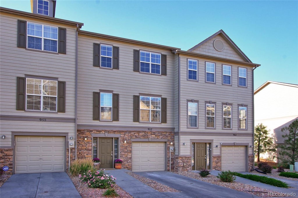 You will fall in love with this wonderful 3 bed 4 bath townhome in an excellent location! Incredible unobstructed front range views! The homeowners have taken great care of this home and added multiple upgrades such as a completely remodeled kitchen with new countertops and sink, elegant backsplash, stainless steel appliances, refinished cabinets with crown molding and upgraded hardware. Additional upgrades include beautiful luxury tile flooring on the lower and main levels, custom wood ceilings, upgraded vanities, newer high-quality paint, upgraded lighting fixtures, tile surround gas fireplace, upgraded baseboards and more! The kitchen was modified to open up to the large living room and the dining area with a walkout to the deck. Plenty of natural light. The upper-level features TWO primary suites with their own ensuite bathrooms and large closets. The laundry room and the 3rd bedroom with upgraded full bath are both located on the lower level along with garage access. Washer and dryer included. Wow those views! The large deck off the living/dining room area is perfect for entertaining and relaxing with friends and family while you enjoy the stunning views. Plenty of additional parking for guests near the home. The location of this home is perfect with easy access to I-25 for a commute to Denver, Colorado Springs or the Air Force Academy, hiking and biking trails, shopping, restaurants, YMCA and schools. Trash, snow removal, insurance, lawn maintenance all included in the HOA. With no worries about exterior maintenance, you are able to enjoy the interior of the home and all it has to offer. This is a great home in a great community. Welcome home!