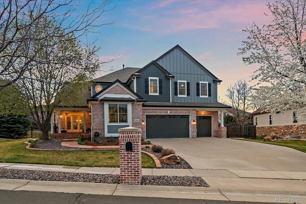 Step into timeless style and curb appeal with this beautifully updated home, showcasing a newly renovated exterior w/ striking German Smear brick exterior that adds rustic elegance & character. All-new James Hardie board and batten siding pair perfectly with the textured brick, creating a crisp classic European aesthetic. A welcoming covered front porch leads into the charming foyer, where French doors open to a bright sitting room filled with natural light and views of stunning Colorado sunrises. Entertain with ease in the spacious dining room, complete w/ a niche ideal for a sideboard or hutch. The custom kitchen is a true showstopper, featuring quartz countertops, new cabinetry, & premium JennAir appliances—including a double oven, gas range with hood, microwave drawer, and dual-zone wine fridge. A walk-in pantry adds even more functionality. The kitchen flows into a cozy dining nook and the inviting family room, complete with built-ins, surround sound, and a fireplace. A stylish mudroom with built-ins rounds out the main level. Upstairs, the expansive primary suite features a remodeled bath w/ heated floors, steam shower and a custom walk-in closet. An en-suite bedroom includes a private remodeled bath with heated floors and walk-in closet, while two additional bedrooms share a beautifully updated Jack and Jill bath—also w/ heated floors. A laundry room w/ cabinets & linen storage completes the upper level. The finished basement is perfect for entertaining, w/ a large TV area, game room (pool table included), wet bar, 5th bedroom, & en-suite bath. Step out to your .35 acre private backyard and enjoy an extended patio w/ a fire pit, gas grill stub, garden, dog run, and a lighted sport court. A large shed is perfect to store your outdoor gear. Located in the sought-after Country Estates neighborhood in Boulder Valley Schools, near Lake Link Trail and a block from Country Estates Park. Walk to Aspen Creek K-8. Convenient access to Denver, Boulder, and DIA.