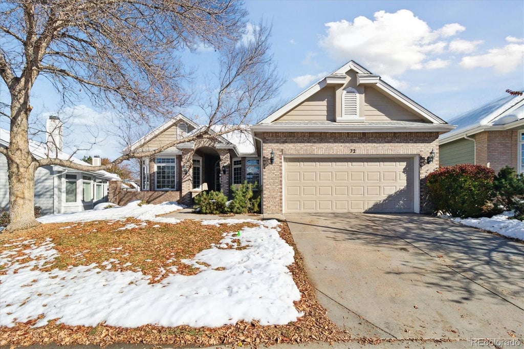 Welcome to 72 Canongate Lane, a stunning residence in the prestigious Gleneagles, a 55+ gated community in Highlands Ranch. This home features the highly sought-after Scottsdale floor plan, offering 2,276 finished square feet of elegant living space. As you enter, be greeted by impressive hardwood floors and an airy ambiance, accentuated by vaulted ceilings and abundant natural light. The formal dining room, with its beautiful bay windows, seamlessly connects to a modern kitchen. In the kitchen, sleek black granite countertops and a stylish backsplash enhance the ample cabinetry, spacious pantry, and extensive counter space, all beautifully set on hardwood floors, alongside a generous breakfast nook. A sliding glass door leads you to a private, low maintenance composite deck, perfect for enjoying the outdoor space. The kitchen flows into a spacious great room, where built-ins flank a grand fireplace, creating a perfect space for relaxation. A private study with French doors and additional built-ins provides an ideal workspace. The primary suite impresses with high ceilings, a wall of windows, a walk-in closet, and an ensuite bath featuring a double vanity, walk-in tub, and separate shower. The spacious secondary bedroom is inviting for guests, offering comfort and access to a well-appointed second bathroom with updated granite finishes. Conveniently located off the attached garage is a large laundry/mudroom, providing practicality and additional storage. The lower level offers a versatile finished space, perfect for a family room or hobby area, with ample storage and potential for further customization. This home has been lovingly maintained by its original owner since its construction. The HOA provides access to a pool and clubhouse, offering a variety of activities and events. The Links golf course is conveniently located within the community. With close proximity to I-470 and Park Meadows, this home offers both convenience and luxury. Book your showing today!