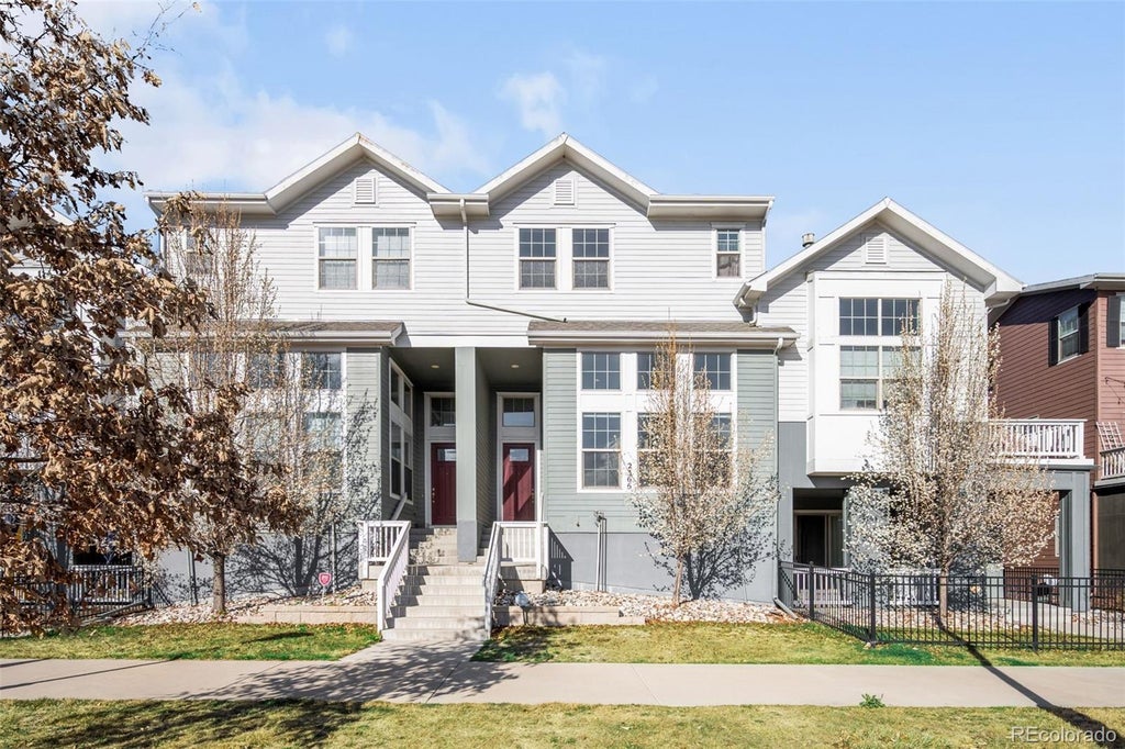 Modern style meets comfort in this beautifully maintained townhome in Denver’s vibrant Central Park neighborhood. With a bright, open floor plan and a newly remodeled primary bathroom, this home is move-in ready and designed for effortless living. The main level features soaring ceilings, large windows, and luxury vinyl tile flooring that flows through the spacious living and dining areas. The kitchen is a standout, with quartz countertops, stainless steel appliances, under-cabinet lighting, and an oversized island perfect for casual dining or entertaining. Step outside to a generous Trex deck, ideal for enjoying Colorado’s sunshine. Upstairs, the primary suite offers a peaceful retreat with a walk-in closet and a beautifully updated ensuite bathroom. Two additional bedrooms are well-sized, each with walk-in closets and plenty of natural light. Additional highlights include central air conditioning, a tankless water heater, a convenient laundry/mudroom, and a two-car garage. Located just minutes from 29th Avenue Town Center, Eastbridge, Stanley Marketplace, and Northfield, this home offers easy access to parks, pools, trails, and all the best of Central Park living.
