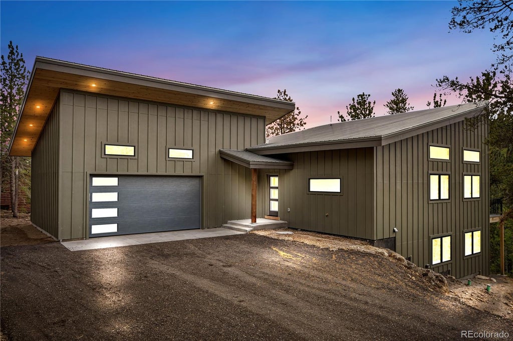 SELLER CONCESSIONS AVAILABLE!!This impressive new build is located in the charming Dory Lakes Community and sits on 1.3 acres. The main floor features an open floor plan beginning with a spacious kitchen that boasts a large island, ample counter space and a stainless steel appliance package. The kitchen seamlessly flows into the dining area and family room with expansive windows giving an abundance of natural lighting. The family room will lead you to your private deck perfect for entertaining or just relaxing. Adding to the main floor appeal is a 1/2 bath for guests and a large primary bedroom with spacious closet space and a private primary bathroom. The finished walk-out basement not only leads you to your own little forest outside, but offers two generously sized bedrooms, a beautifully designed bathroom, the laundry room and utility room. In addition to the top-tier interior finishes is the attached oversized 2 car garage that has extra room for work space or storage and wiring set-up for an EV charger or 220 outlet. Additional parking for an RV or recreational toys on the side of this impressive corner lot property. Walking distance to Dory Lake that is stocked yearly and for members only, 2 additional ponds in the community that also offer great fishing. Gravel roads maintained by the county. Conveniently located next to hiking trails, the Gilpin County Fairgrounds and Black Hawk/Central City. Only 30 minutes to Golden, Evergreen and Nederland. Discover the unparalleled comfort and adventure in this thoughtfully crafted stunning residence.