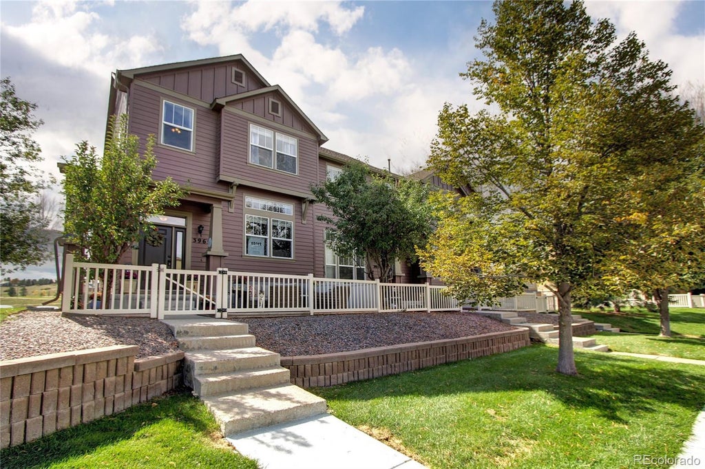WELCOME TO MORGAN'S RUN IN BEAUTIFUL CASTLE ROCK! Well maintained END UNIT townhome in highly sought after Morgan's Run in the Meadows. Units in this complex rarely become available. Upon entering you will find a bright open living room with a cozy fireplace with custom mantle. Remodeled kitchen! Large island with NEWER granite counters, appliances, garbage disposal! New water heater October 2024. Also, conveniently located on the main level you will find a half bath, washer & dryer and a large storage area under the stairs. Upstairs you will find the lovely master bedroom with private master bathroom, vanity with new granite counters, large closet. There are two additional bedrooms and a remodeled full bathroom with gorgeous quartz counter top upstairs. Huge crawl space in the garage which you can stand inside! Views abound! Enjoy views of a park from your quaint front yard with a new concrete patio & in the back you overlook open space & Wiggly Park the dog park as well as lovely mountain views! Walking access to The Grange pools & amenities. Trail outside the home takes you to Paintbrush park, Baseball field, Soccer field, Volleyball court and acres of trails. Close to shopping, restaurants, hospital, schools, parks, and so much more! WELCOME HOME!