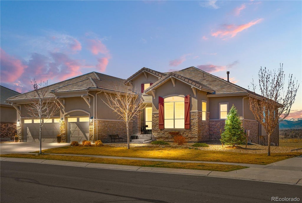 Outstanding Unobstructed Views! This gorgeous property has it all! Enjoy the beautiful sunsets while overlooking the open space and the Flatiron Mountains. This highly sought after Antero floorplan has all the upgrades! Designer kitchen include glass backsplash, upgraded cabinets, rollout drawer, trash and recycle bin cabinet, extended kitchen island, gourmet kitchen and an extra walk in pantry, Enjoy the spacious living room which has a stacked stone fireplace adjacent to large deck with expansive views. Eat in kitchen & full separate dining room can also be used a second sitting room/den & the large office on the main level. Beautiful flooring and cabinetry throughout this property with stylish lighting fixtures & two gas fireplaces. The main floor primary extended bedroom has bay window, tray ceiling & views, Soaking tub & European frameless shower and large walk in closet with organization system. The 2nd bed offers a 3/4 bath ensuite and a 3rd 1/2 bath for guests. Large laundry room with washer/dryer, utility sink, extra cabinets and mudroom w/ sitting bench and cubbies. Professionally finished walkout basement with pool table, rec room, 2nd cozy gas fireplace, designer bar area with kitchen and eat in bar which includes beverage refrigerator, 2nd dishwasher, ice machine, under cab wine glass rack and spacious 3rd bed, 3/4 bath with designer brick set tile, hard surface counters and upgraded cabinets. The yard is perfect for a vegetable garden or pet area. Over 130 clubs, pools, hot tubs, walking track, billiard room & craft room and exercise and dance classes. Anthem Ranch is Colorado's award winning DelWebb community set between Denver and Boulder with easy access to Denver's International Airport, local restaurants, and is surrounded by miles of walking and biking trails. The 30,000 sq ft clubhouse offers a perfect lifestyle should you desire, to enjoy the Active Living community that makes Anthem Ranch special.