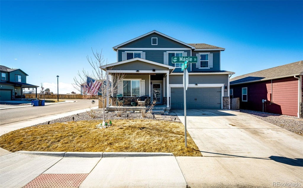 Don't miss this opportunity to own a 5 bedroom home located on a corner lot in Bennett Crossing! Why wait for the builders when this one is ready for you? As you walk in you will notice an open main floor plan with the kitchen, living room and dining area creating a desirable layout. The eat-in kitchen features a large island with seating, granite countertops, pantry, ample cabinet space and a gas range. The bedroom and bathroom on the main floor could make a great guest space offering privacy for you and your guests! Upstairs you will find a loft that could be used as office space or a second living room. The oversized primary suite offers an en-suite five piece bathroom and a generous walk-in closet. You will also find an additional three bedrooms, hall bath, and a laundry room that offers storage! Enjoy Bennett's small town charm while having amenities close by! Located in close proximity to the Bennett Rec Center, Grocery Shopping, restaurants and more! Quick and Easy commute to Buckley Space Force Base, I-70, Denver, E-470 and Denver International Airport! Schedule your showing today!