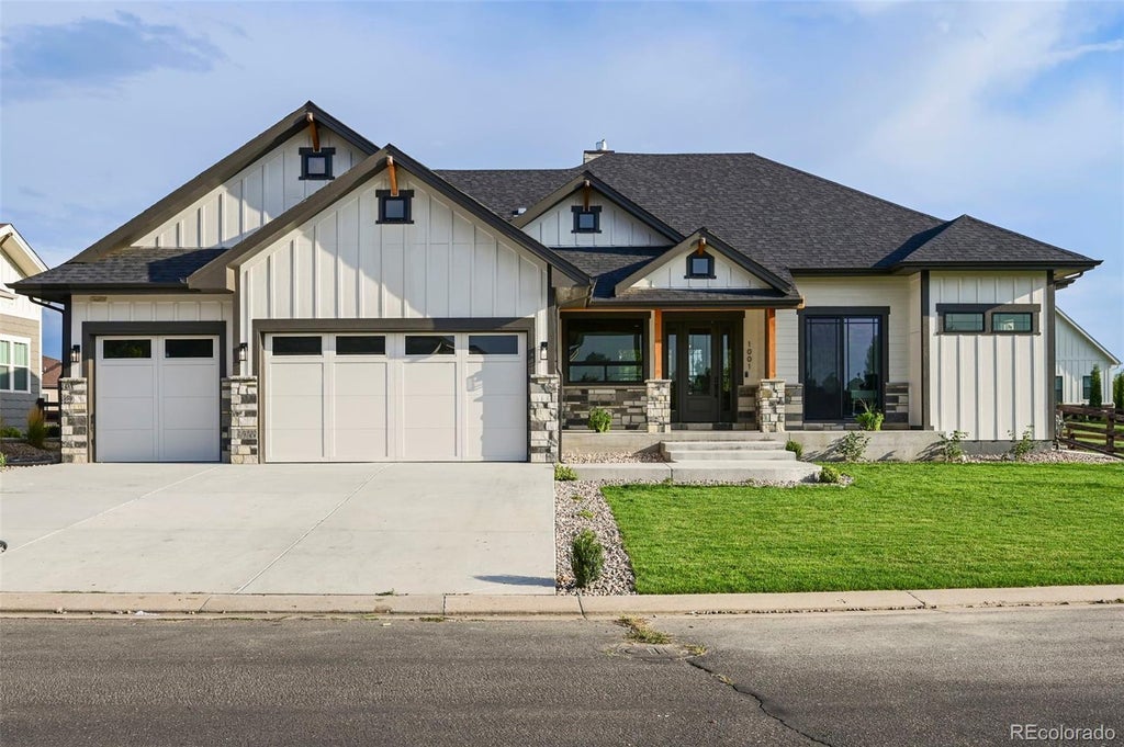 This newly built custom ranch is nestled on a corner lot with open space and a green belt surrounding it on all sides but one. The centerpiece of this modern mountain ranch home is its massive, wrap-around custom kitchen. This main space boasts 12 ft ceilings, white oak hardwood floors, and constant views of your very own custom stone transparent mezzo fireplace. The kitchen is designed with a quartz waterfall island, floor-to-ceiling cabinets with soft close pull-out pantries, a custom built-in touchless hood vent, a true full-size double Oven, and Bosch appliances. The stand-alone Bosch cooktop sits between 35’ of countertop space in this kitchen, perfect for entertaining and breaking out all the ingredients for those in-depth meal preps. Mountain modern is the feel you experience all throughout the cozy chandelier-lit family room, contrasted by the moody yet bright front office with direct patio access. The master suite has its own dedicated five-piece ensuite bathroom with Italian Limestone tile floors, a stand-alone luxury bathtub, and an enclosed shower with 5 function massage showerhead. Pass through to your dream closet with full body mirrors, and a seated makeup vanity. Head downstairs to reveal a massive common area and ceiling heights that immediately draw your eyes up. No expense was spared on this truly special build, authentic rough cedar beams line the front and rear covered patios where you can take in the relaxing scenery of the rocky mountains. Security doorbells, electronic deadbolts and quiet belt-driven garage door openers overseeing your 3car garage all feature security cameras for peace of mind. A tankless water heater is included along with an electrical sub panel in the backyard to allow for easy installation of a hot tub. Come turn the key and open the door to the possibilities this home holds on a very rare corner lot in Serratoga Falls.