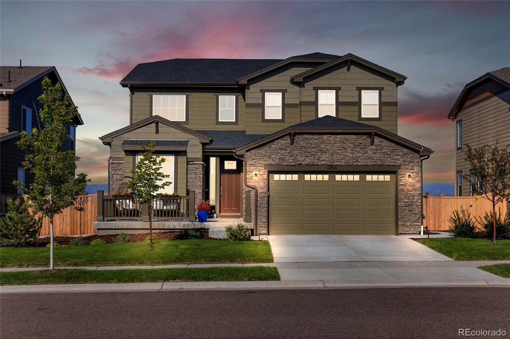 Embrace effortless style and comfort in this beautifully designed 2022-built home, offering modern living with a stunning backdrop of MOUNTAIN VIEWS! Step inside to an open floor plan that’s filled with natural light and high-end finishes throughout. A dedicated home office greets you, alongside large plank flooring and soaring ceilings. The spacious layout includes a separate formal dining room, breakfast nook, coffee bar, massive walk-in pantry, and four generously sized upper-level bedrooms, along with 2.5 bathrooms and a cozy upstairs loft. The luxurious primary suite features a 5-piece en suite bathroom with a soaking tub, providing a serene retreat. The walk-in closet is conveniently connected to the upstairs laundry room, offering ultimate ease and functionality. The kitchen and living room offer breathtaking views and a charming fireplace. The unfinished basement is fully excavated with 9 foot ceilings which is perfect for a home gym and it is ready for your personal touch, with a rough-in for additional customization. The garage is a three-car tandem design, offering space for an additional vehicle or extra storage. Outside, enjoy a west-facing deck perfect for sunsets and mature landscaping with raised garden beds. This home is located SO CLOSE TO the Big Dry Creek Park, 1 MIN TO UNDERPASS that takes you to THE BIG Dry Creek Trail to Stanley Lake, and offers quick access to shopping and highways. The community features a POOL, PLAYGROUND, and GRILL spaces. This home is just 2 minutes from the light rail with DIRECT DOWNTOWN access!