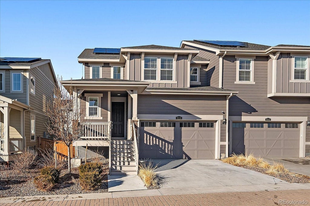 Welcome to this pristine 3-bedroom, 3-bathroom duplex home in the heart of Buffalo Highlands! Thoughtfully maintained, this move-in-ready gem showcases true pride of ownership. Upon entry, you’ll find a conveniently located powder room. The main floor features an inviting open layout and luxury vinyl plank flooring throughout. The spacious family room boasts soaring ceilings and large windows with plantation shutters that fill the space with natural light. The stunning kitchen is equipped with sleek cabinetry, stainless steel appliances, granite countertops, and a large island with an extended counter for extra seating. Upstairs, you'll find three well-appointed bedrooms, two full bathrooms, and a laundry room. The primary suite serves as a private retreat, offering an ensuite bathroom with dual sinks, an expansive vanity, a spa-like shower with a bench, and a generous walk-in closet. Need more space? The 822 sq. ft. unfinished basement with high ceilings provides endless possibilities for expansion or extra storage. Additional features include a ceiling fan, leased solar panels, and an attached two-car garage. The low-maintenance, fenced backyard is perfect for entertaining, featuring a covered patio and a deck for outdoor relaxation. Ideally situated with easy access to E-470, Peña Blvd, and I-70, Denver International Airport is just minutes away. Plus, you’re close to Fronterra Park, Second Creek Open Space, and Reunion Recreation Center. This beautiful home is ready for you—schedule your private showing today!