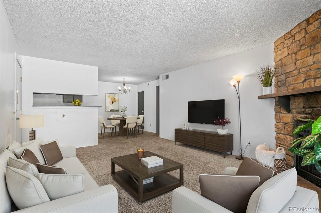 Nestled on the second level, this functional 2-bedroom, 2-bath condo offers a blend of privacy and convenience, being a top-floor unit with no neighbors above. Step into an open and inviting floor plan that seamlessly connects the living, dining, and kitchen areas, creating an ideal space for entertaining with a floorplan that flows. The bright living room features a cozy wood-burning fireplace and sliding glass doors that open onto a private balcony, the perfect spot to relax and unwind. The spacious primary bedroom includes an ensuite bath with a tiled shower, and glass sliding door adding ease to your daily routine. A second large bedroom, ideal for guests or a home office, is conveniently located near the hallway bath, complete with a tub and tile surround. This property also boasts a rare 3-car garage, along with an additional reserved surface parking space—ensuring plenty of parking for both owners and their visitors. Ideally situated, this property provides easy access to nearby parks and scenic outdoor trails, public schools, convenient retail shopping, grocery stores, and a wide selection of local restaurants—bringing the best of the community right to your doorstep.