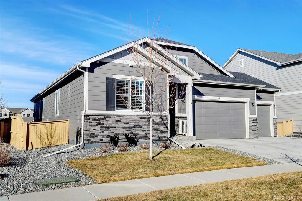 Welcome home to this inviting open floor plan in Harvest Junction. Built in 2020 this home has many upgrades throughout including upgraded wood flooring, countertops, 3 car garage, plantation shutters, a large-oversized patio and a fourteen foot sliding glass door. The main floor features an elegant primary bedroom with a luxurious en suite bath featuring an opulent walk-in shower. There are two more bedrooms on the main that can also serve as offices. The kitchen has a gas cooktop, large island and upgraded stainless steel appliances. Rounding out the main floor is another full bathroom and laundry room. The back of the house has a fully covered patio and another wraparound slab. The yard is landscaped and fenced. Downstairs the finished basement has two additional bedrooms and a full bath plus a large flex room. There is even a 500 SF unfinished storage room. This home shows like the model. Plan to see it today!