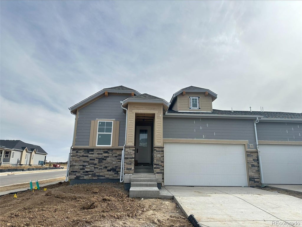MLS#7793112 New Construction - April Completion! Welcome to the Castlewood, a beautiful home in the Landmark Collection at The Aurora Highlands! Just off the foyer, two secondary bedrooms and a full bath offer comfort and convenience. Continue down the hall to an open-concept living space where the gathering room and dining area flow effortlessly, perfect for entertaining. The well-appointed kitchen is a chef’s dream, featuring a spacious island, large pantry, and plenty of cabinetry. A private flex room adds versatility, whether you need a home office, playroom, or cozy retreat. Tucked away for privacy, the primary suite is a true sanctuary with a spa-like en-suite and a generous walk-in closet. Structural options added include: Air conditioning.