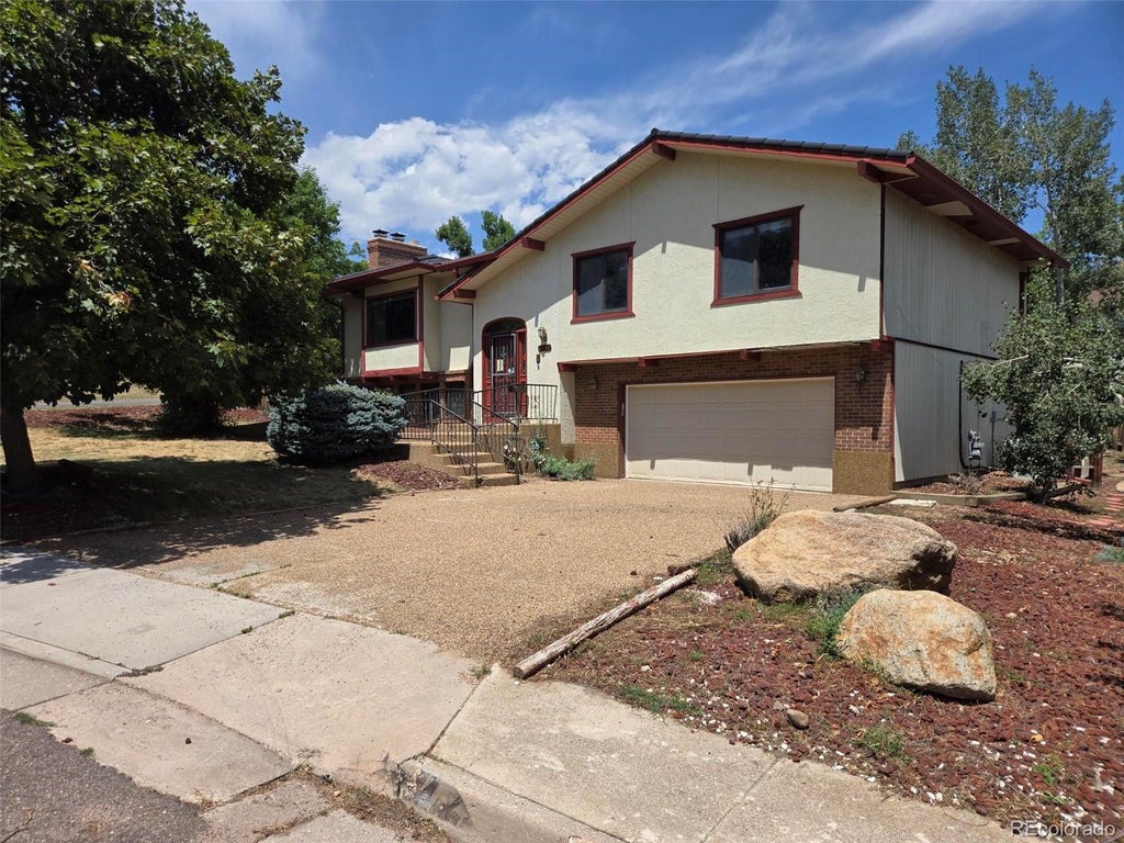 Wonderful opportunity to update this family home in a great location and corner lot with spectacular views. 2 fireplaces with brick surround, large family room and living/great room. hardwood floors. Cheyenne mountain School district. large 11,313 sq ft lot. large sunroom with non working hot tub currently, fenced back yard and shed compliment the exterior.