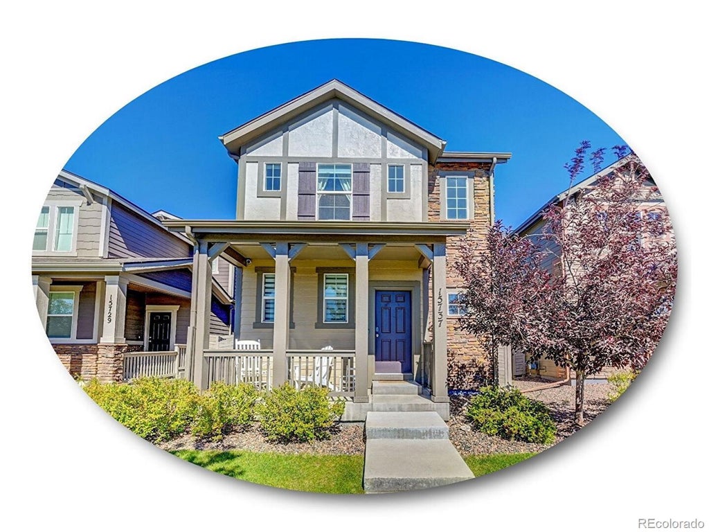 Outstanding two-story facing a serene greenbelt, just steps from the Avion Hub clubhouse and pool! Enjoy mountain and open space views from the covered front porch, while soaring ceilings and a modern chandelier create a grand entrance in the foyer. The home’s bright, open floor plan is complemented by elegant wood-look flooring, adding warmth throughout. A spacious main-level office with stunning custom-milled 8’ French doors creates an ideal work-from-home space, set near a convenient half-bath. Designed with gatherings in mind, the open kitchen boasts pristine white cabinetry, sleek granite countertops, stainless-steel appliances, and a sprawling eat-in island, connecting to the patio through sliding glass doors. Seamless design extends into the adjacent dining room and living room, where abundant natural light creates an airy, inviting space. Upstairs the spacious primary bedroom radiates a soothing ambiance, featuring a tray ceiling, artful wooden ceiling fan, 3 Day Blinds and soft recessed lighting. The luxurious primary en suite bath offers dual sinks, a walk-in closet, and an oversized shower with bench seat and chic nickel accents. A second-floor laundry room adds convenience to daily life. Step outside to a charming patio with a custom privacy wall, space for your grill, and bistro lights on a photosensor timer! A smart home in every sense, enjoy WiFi-enabled features throughout—from the front door lock to programmable lighting. Brand new roof with hail resistant shingles, new gutters, and fresh exterior paint! Featuring an oversized garage with brand new insulated door, custom storage solutions, a whole-home humidifier and an unfinished basement with rough-in plumbing, this home truly offers it all. Residents at Avion at Denver Connection enjoy 40 acres of parks and amenities perfect for maintaining an active Colorado lifestyle, including a clubhouse with pool, community dog park, and an expansive 10-acre park to begin construction in 2025.