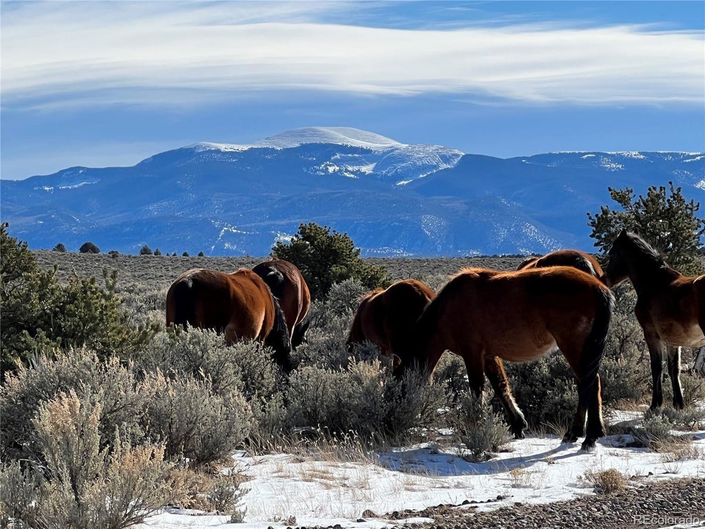 AN INCREDIBLE 80 ACRES atop the Wild Horse Mesa! Priced to sell with a NEW DRIVEWAY, GATE & A VERY LARGE CLEARED AREA that is hidden in the trees, This huge property is heavily treed in the back 40, with more open meadow in the front. Views here are of the Sangre de Cristos to the east, the iconic Mount Blanca (with it's 4, 14,000 ft peaks) to the north and in the far west, the San Juan mountains. This is an off the grid property on a dead end road. It's a peaceful place to build your dream home/cabin and set down roots. But there are no build times nor HOA here. So it's also a good place to just come park your RV from time to time and watch the clouds roll across the mountains. This property makes an excellent base camp to explore the beautiful Southern San Luis Valley, the largest alpine valley in the world. Approx 60 miles to Taos New Mexico to the south and about the same to the Great Sand Dunes National Park.