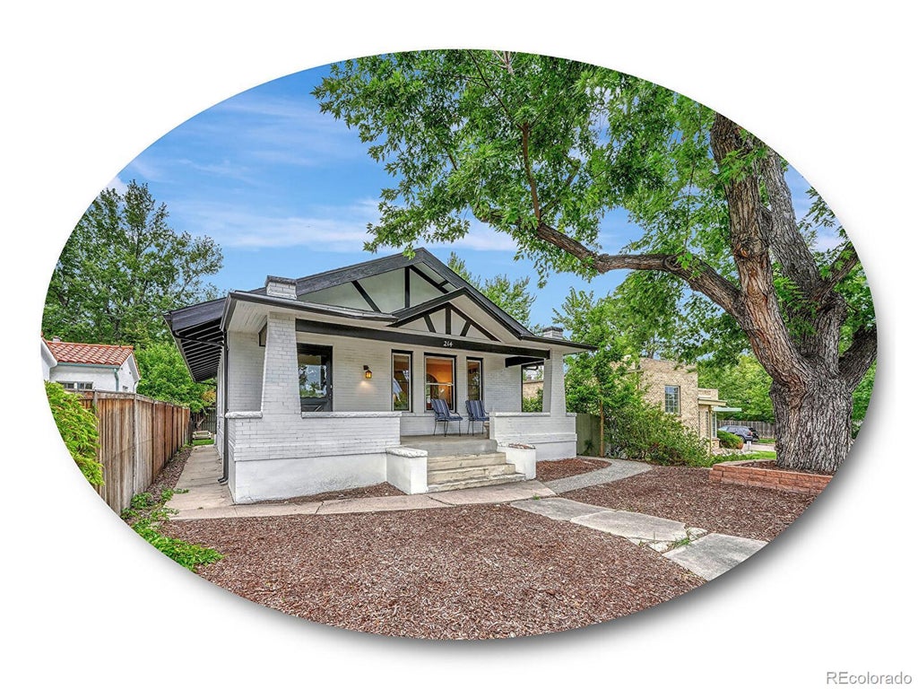 Welcome to 214 Colorado Boulevard, a beautifully maintained turn-of-the-century bungalow nestled in the heart of Denver's sought-after Hilltop neighborhood! Contemporary colors blend with classic elegance as a large shade tree rests above he covered front porch, perfect for morning coffee or afternoon lemonade. Charming arches and crown molding greet you atop hardwood floors in the living room, where bright light pours in from oversized windows. A cozy fireplace invites evening relaxation, and the nearby formal dining room welcomes bustling dinner parties and intimate meals alike. The home's renovated kitchen is a modern masterpiece, featuring butcher block counters, premium stainless steel appliances, soft gray shaker style cabinetry and a farmhouse sink. Enjoy a good read in the nearby sunroom, a bright and airy haven perfect for indoor plants. The primary bedroom offers a serene escape, featuring elegant crown molding and hardwood floors. An additional upstairs bedroom pairs with a full bath creating an accommodating space for a guest room or office. The spacious basement bonus room is the home's hidden gem, featuring abundant natural light and a charming painted brick fireplace. A basement bedroom and full bath offer separation of space for loved ones, and a generous basement utility room is perfect for a hobby space or a home gym. The home's fenced yard is ready to make your urban gardening dreams come true! Raised garden beds await your green thumb as a nearby pergola wrapped as an age-old grape vine appoints a charming private patio, ideal for al fresco dining or simply soaking up the Colorado fresh air. Don't miss the detached two-car garage, perfect for your vehicles and adventure gear! Located in the coveted Hilltop neighborhood just steps from Cranmer Park and the lively Cherry Creek North, you'll have the city's premier shopping, dining and outdoor recreation at your doorstep.
