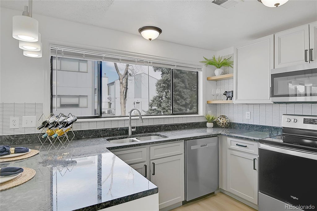 Huge bedrooms, renovated kitchen, tons of space that is great for roommates! Discover this beautifully updated townhouse in Aurora, featuring 4 spacious bedrooms and 3 modern bathrooms across an enormous 1,860 finished square feet. The heart of the home, a modern kitchen, boasts gleaming granite countertops, newer cabinets, stylish backsplash, and stainless-steel appliances, all bathed in natural light from large windows. New carpet and vinyl flooring enhance the inviting atmosphere throughout. Enjoy the luxury of a large primary bedroom with a walk-in closet and en-suite bath, complemented by two additional bedrooms that offer flexible living options, and a main-floor bedroom that can serve as an office. The attached 2-car garage provides ample storage and 220 for car charging, while the large balcony, surrounded by mature trees, offers a peaceful retreat. Conveniently located across from a park and just minutes from Light Rail, Aurora Mall, and various dining and shopping options, this townhouse is an exceptional value that you must see to appreciate!