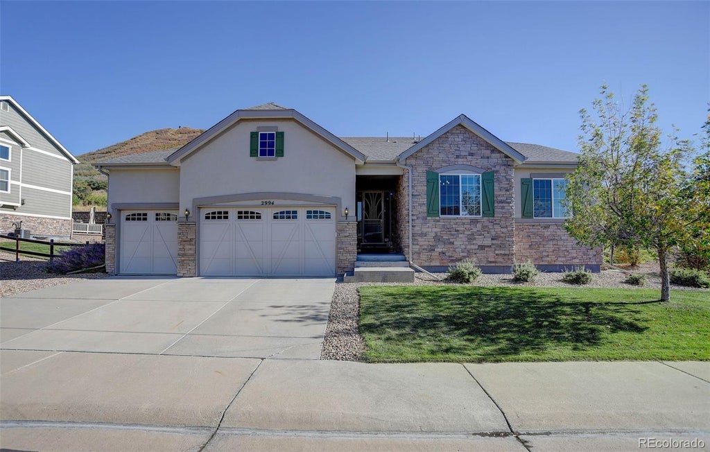 Welcome home to this stunning rancher located in the highly desirable Highlands at Plum Creek subdivision in Castle Rock. Gorgeous architectural lines adorn this modernized country farmhouse façade accentuated with an immaculately manicured yard. As you pass through the oversized front door, you are immersed in natural light that permeates the entire home. The great room, which is perfect for entertaining, is appointed with a corner-oriented fireplace flanked by gorgeous sandstone colored stone. Enjoy the engineered hardwood floors that provide beautiful aesthetics while being very low maintenance and extremely durable. The kitchen is a cook’s dream equipped with a cooktop, double oven, brand-new stainless-steel refrigerator, extended Java colored maple cabinets, and accented with custom lighting all surrounding the centerpiece which is an island finished with imported Brazilian granite. There is ample space for socializing and entertaining around the island or for more formal gatherings within the dining nook. The primary suite easily accommodates a king-sized bed and has upgrades throughout the attached five-piece bath including a huge walk-in California closet. The main floor also boasts two additional good-sized bedrooms with a full bath centrally located for easy access. As you traverse the sliders onto the back covered patio, you are instantly transported to your own private oasis as you own nearly an additional half-acre to your east and are flanked by additional open space to the south. To further enhance the setting, enjoy the additional privacy created by the included patio sunshades. Finally, the unfinished basement provides endless possibilities – add bedrooms for your growing family, construct a fitness area, build a movie theater, etc…you are only limited by your own imagination. So please don’t walk, run to see this gem as it won’t last long!