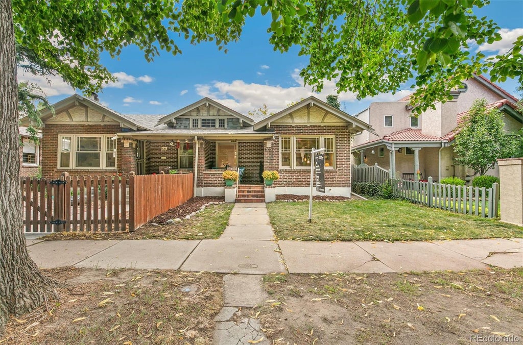 TWO Blocks from Wash Park - nestled within million dollar homes! One of Denver’s most desirable neighborhoods! Offering 1,388 sqft of living space, providing a comfortable layout with plenty of room to enjoy PLUS a private fenced backyard - BEATS condo living! The quaint covered front porch is an inviting spot to sip morning coffee and meet neighbors passing by on the tree-lined street. Inside, you’ll find gleaming hardwood floors running throughout the main living areas, along with recessed lighting that gives the space a clean and modern feel. The decorative brick fireplace and oversized window anchor the living room and fill the space with sunlight. The dining room provides a dedicated space for meals and gatherings flanked by a large window, stunning wood trim, and built-ins. Right off the dining room are two nicely sized bedrooms (one holds king bed!), that can easily flex to serve a variety of needs—a home office, hobby room, or guest bedroom. A full bathroom with a clawfoot tub serves the home, designed with convenience in mind and easily accessible from both bedrooms and main living spaces. The kitchen is equipped with modern appliances and offers everything needed for everyday cooking. Head downstairs to the partially finished basement, where you’ll find a storage room, a bonus finished space with built-in shelving, and a laundry area. Modern updates include central air conditioning, which keeps the home comfortable year-round. Outside, you’ll enjoy the beautiful backyard and sunny brick patio—perfect for relaxing outdoors or entertaining while the sun sets on your new mountain views. Lastly, detached one-car garage adds convenience, security, and bonus storage. With its solid layout, private outdoor space, and excellent location, this home is a fabulous opportunity to capture Denver living at its best!