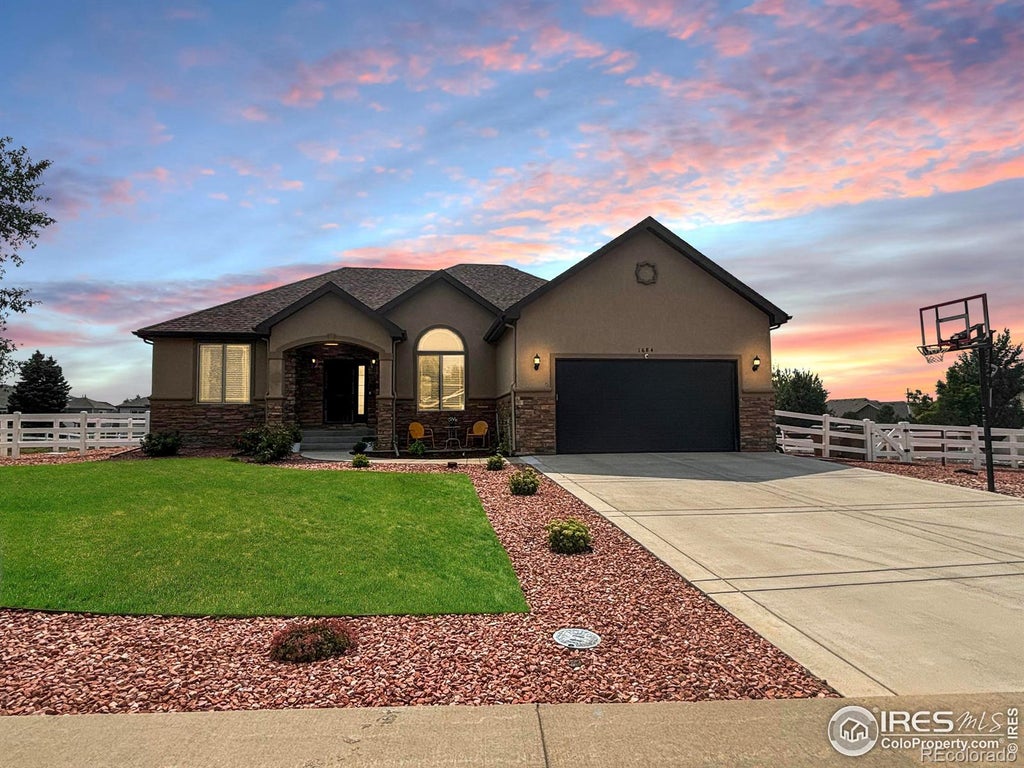 Welcome to this custom,ranch-style home,perfectly positioned across from the golf course & backing onto a serene HOA greenbelt. Nestled in a charming & cozy town along the Front Range,this property offers the best of tranquil living & convenient access to major destinations,including a 25-min drive to Denver,35 mins to DIA & just 45 mins to the Rocky Mountains. This custom home,meticulously maintained on an oversized lot,features 5 beds & 3 baths,offering ample space for family & guests. Modern,app-driven features such as a Nest thermostat,Ring doorbell,& B-Hyve sprinkler/drip system provide effortless home management from anywhere. The inviting front porch is the perfect spot to have your morning coffee while greeting friendly neighbors. Step into the backyard & be captivated by the stunning views of the Colorado mountains. Imagine hosting an outdoor meal with friends under the shade of maple & willow trees,all while watching the sun set over the Rockies. This home is an entertainer's dream,with several dining & eating areas both inside & out,including a spacious eat-in kitchen with stainless steel appliances & granite countertops,an open living area,& a formal dining room. The basement adds an element perfect for multi-generational living & offers even more entertainment options,featuring a great room,wet bar,& a versatile space that can be used as a weight room,play room,non-conforming sixth bedroom,or home office. The interiors boast wood & travertine tile floors,as well as pristine carpets that have never been touched by outdoor shoes, all in immaculate condition. With a 12-month home warranty & a roof that comes with a 10-year transferable warranty,peace of mind is part of the package. Recent upgrades include a new A/C capacitor(2024),Class 4 shingle roof(2023),cobblestone path(2023),microwave (2023),kitchen paint(2024),HVAC motor(2023),and refrigerator(2022). This is a truly exceptional property w/ a 12mo Home warranty provided by seller!