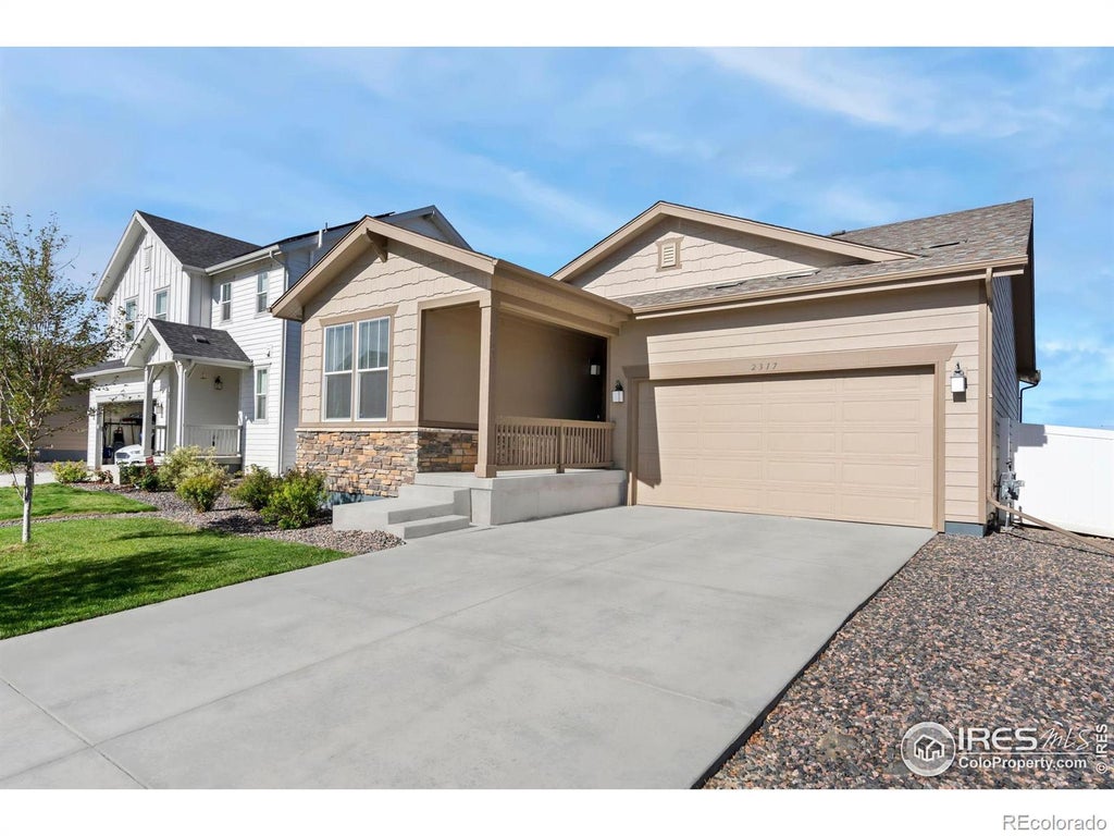 Low assumable interest rate!! Welcome to 2317 Barela Dr., a beautiful ranch style home located in the Hammond Farms neighborhood of Berthoud, CO. Built in 2019, easy access to HWY 287 making your commute effortless. With three spacious bedrooms and two bathrooms, this home is perfect for gathering and entertaining. The attached two-car garage provides ample storage and convenience, while the fully landscaped and fenced backyard offers a private oasis that backs onto open space, delivering views of the stunning Rocky Mountains. Step inside to discover elegant wide plank floors and upgraded granite countertops, a stylish backsplash, and top-of-the-line appliances. The open concept layout allows for a seamless flow from the large kitchen with gas range into the living room, centered around a cozy fireplace-a perfect setting for relaxing or hosting gatherings as you enjoy breathtaking sunset views. The master bedroom, located at the rear of the home for added privacy, boasts a generous walk-in closet and a luxurious private bath. Additional features include energy-efficient solar panels that will transfer to the buyer free and clear, helping to significantly reduce utility bills to around $30/month and a new roof installed in Oct. 2024 for added peace of mind. Beyond the home, you'll find the renowned TPC Colorado, the first new up-ground golf course in Colorado in nearly a decade, complete with a beautiful clubhouse and excellent dining options. With close proximity to hiking trails, golf courses, shopping, and more, this property offers a truly enviable lifestyle. Don't miss the opportunity to make 2317 Barela Dr. your new home.
