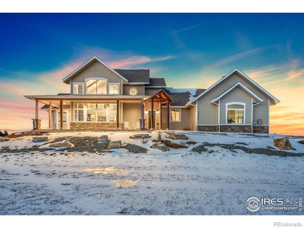 Welcome to this exquisite two-story home, where luxury, comfort, and contemporary design come together on a scenic 2.55-acre lot. The open floor plan is breathtaking, featuring an oversized quartz island, SS appliances, and 42" soft-close cabinets with convenient pull-out lower drawers. Near the entry, you'll find a versatile main-floor bedroom or study along with a stylish full bathroom. Step into the living room, where soaring cathedral ceilings, striking wood beams, and a floor-to-ceiling stone fireplace create an inviting and elegant space. Upstairs, you'll discover three spacious bedrooms, including a generously sized primary suite with a beautifully designed five-piece master bath. An additional full bath completes the upper level. The basement offers incredible versatility, featuring a private entrance to a fully equipped mother-in-law suite with a living room, bedroom, and full kitchen. Plus, an unfinished section provides over 1,100 square feet ready for your personal touch. Step outside onto the Trex deck and take in the breathtaking views while entertaining. The property is adorned with fruit trees, including four apple, two pear, one cherry, and one peach tree. Additionally, there's ample space to build a shop for all your toys. Eaton Rec Center nearby as well. This is a home you won't want to miss! Schedule your showing today!