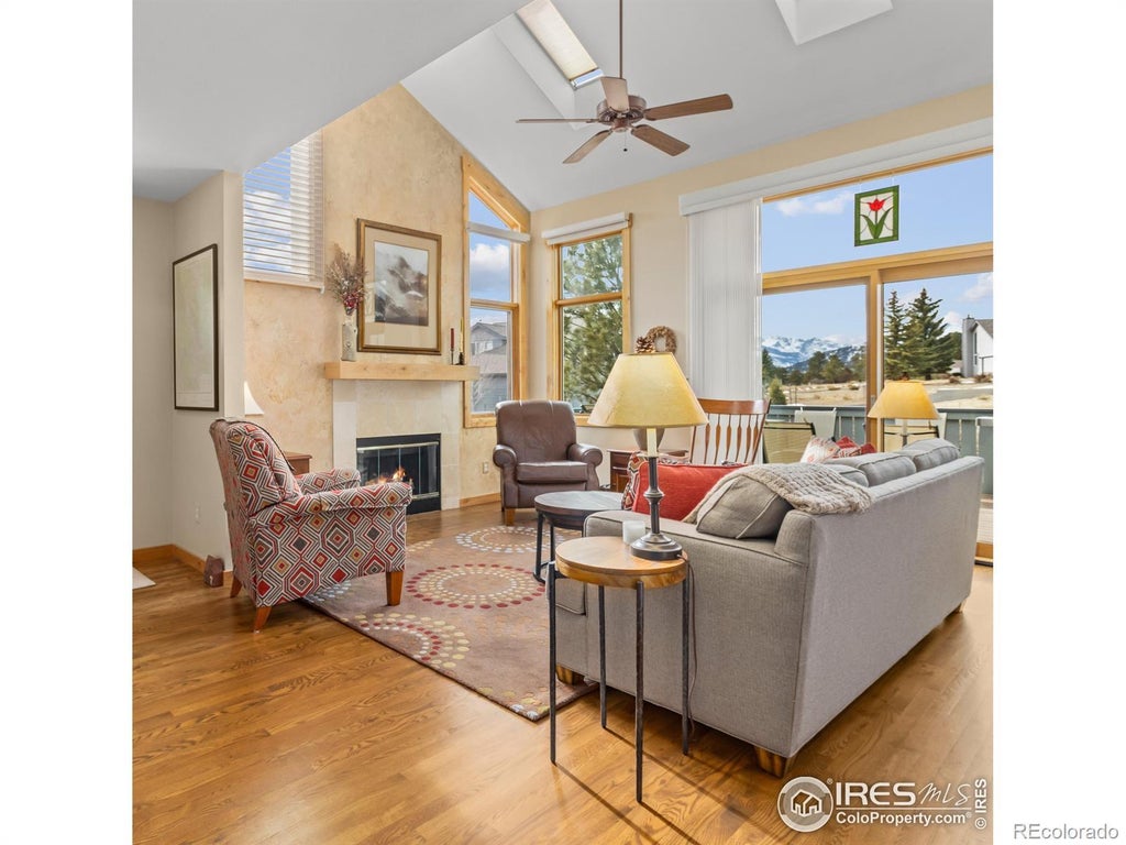 Let the mountains welcome you home! This Ranch Meadow 3 BR is truly a gem! The sellers worked with the builder on some key upgrades and together they created this beautiful, timeless home. Artfully designed with a warm & comfortable palette, it radiates perfection from top to bottom. Natural light pours in through the many windows & skylights & fills the vaulted great room. The well-designed kitchen layout is designed for the cook who loves to visit w/ guests & see the mountains while making your favorite meals. There are Hardwood floors in the great room, granite for all countertops, Knotty Alder doors and trim. The primary BR is roomy and the Custom shower will be a daily joy. Upstairs there's an enclosed family room/away space, 2 BRs and a full bath, and an office. This "duplex" model has no shared walls & the surrounding homes are well spaced, with views all around. Big deck for enjoying the gorgeous snow-capped mountain views that make Estes the special mountain town it is. Great location close to the Estes Lake Trail & Marina, & just down the road from Rocky Mountain Nat'l Park, offering easy access to hiking in the mountains & biking to breweries. Cozy up with a good book by the gas fireplace, share a glass of wine on the deck while the sun sets over the Divide. Enjoy life in the Mountains in your beautiful Ranch Meadow condo!
