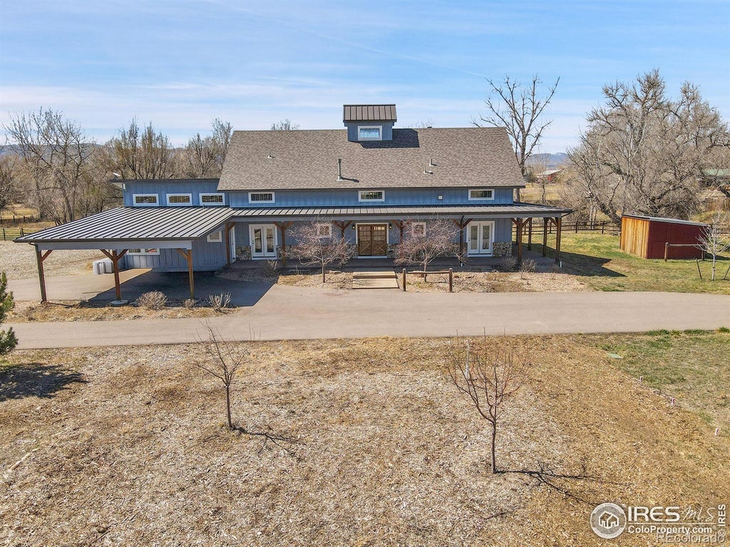 This fabulous 5.89 acre horse property with irrigation rights located outside city limits in Larimer county Colorado is nestled in a quite rural community just 5 minutes west of Old Town Fort Collins is it! The property is gated and fully fenced with Buckley steel horse fencing, making it safe for your animals. Surrounded by huge foothills views, this beautiful farm/ranch estate invites you to move right in and enjoy this open farmhouse layout, featuring a spacious great room including a nicely appointed large kitchen with 2 islands and high end stainless steel appliances with granite countertops, dining room and large vaulted ceiling family room with a gorgeous stone wood burning fireplace. A beautiful main floor master bedroom suite with a gas fireplace opens up to a wraparound deck to enjoy the wildlife and outdoor living. In addition, an expansive south facing sunroom/rec room with a closet and bathroom which could double a second master suite. This property comes with No.10 water for irrigation, and multiple outbuildings perfect for farming and ranching enthusiast. The barn includes a huge 6 stall horse barn, tack room and an upstairs fully appointed barn loft about 1500sf with kitchen and bathroom. The additional large shed/ barn with turnouts and tack room plus a 4000sf storage/event barn that can also be used as a detached garage. There are also two additional storage sheds, a chicken coop, automatic irrigated for a 1 acre growing garden, established fruit orchard and space enough for your trailer and RV. The property also offers a riding arena and round pen. In addition, there is riding access close by to several open spaces and the Poudre River Trail. This idyllic Fort Collins location is surrounded by vast open space, reservoirs, numerous biking/walking/riding trails. Buyers and Buyer's agent must verify all information including but not limited to any claims to water and zoning prior to offer. All information is deemed reliable but not guaranteed.