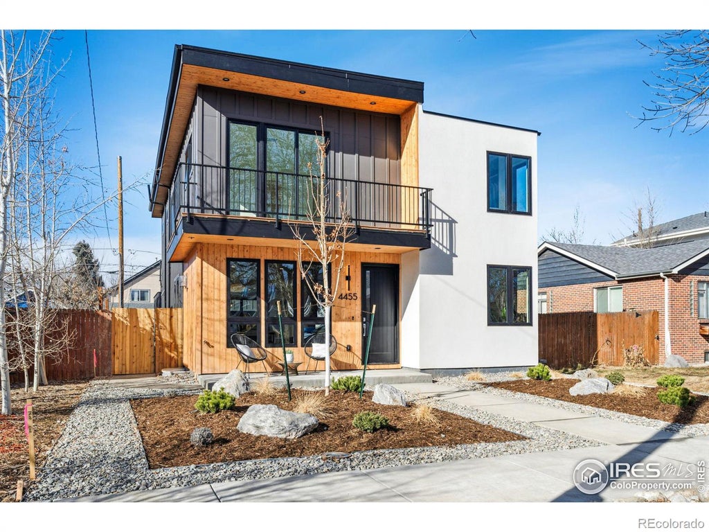 Contemporary modern living nestled in the heart of Berkeley, this newly constructed home offers, 5 bedrooms, 4 bathrooms, multiple outdoor spaces, 2-car detached garage, and a spacious, maintenance-free yard, thanks to the pet friendly turf in backyard and xeriscaped front yard. Close proximity to Berkeley Lake, dog park, multiple grocery stores, and the best shops and restaurants on Tennyson Street. This contemporary modern home features high-end finishes, an abundance of natural light, wood flooring throughout, main level office/bedroom, and custom touches throughout. The open main floor plan offers 9-foot ceilings and a seamless transition from the kitchen to the dining, living areas. The chef's kitchen is centered around a 9-foot waterfall eat-at island with wine fridge, Thermador appliances with 36" gas range, and custom White oak wrapped hood. Upstairs, the elegant primary suite is accented by 10-foot ceilings, private balcony, custom walk-in closet, and luxurious bathroom with heated floors, and wet room offering dual shower heads. The upper level is completed by two additional spacious bedrooms with a Jack-and-Jill bathroom and laundry room. The fully finished basement offers 9-foot ceilings, oversized family room with a dry bar, 5th bedroom (en suite), and multiple storage closets. Two zone HVAC system, house humidifier, tankless water heater, sump pump and radon mitigation system. Quality new construction home with extensive builder warranty