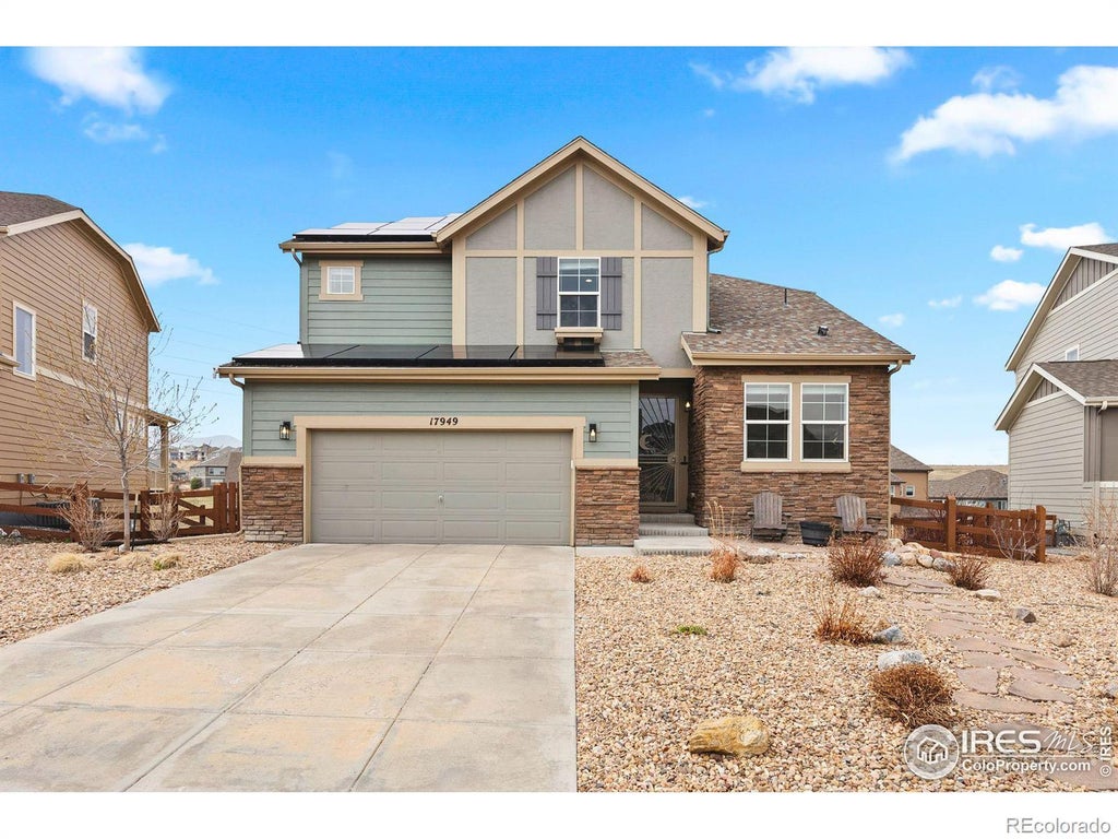 17949 W 94th Drive is a place where modern comfort meets Colorado's breathtaking beauty. Nestled in the heart of Candelas, this thoughtfully designed two-story retreat offers the perfect blend of space, style, and convenience. With 3,350 sq. ft. of living space, including 3 bedrooms, 2.5 bathrooms, every detail has been crafted for both relaxation and functionality. Whether you're enjoying quiet mornings with mountain views or entertaining in the open-concept living area, this home invites you to experience the best of Arvada living.The family room, with surround sound, flows into a gourmet kitchen featuring a large island, granite countertops, stainless steel appliances, and a pantry-perfect for entertaining. A private office provides a dedicated workspace, while the mudroom offers extra storage and organization. Upstairs, a versatile loft adds additional living space. The primary suite has stunning mountain views, a spa-like five-piece bathroom with soaking tub, and a spacious walk-in closet. Two additional bedrooms, both with lots of light and ample closets, share a full bathroom. The unfinished walk-out basement offers endless potential for customization, while the low-maintenance backyard features xeriscaping and astro-turf. A covered deck provides a peaceful spot to unwind while soaking in stunning mountain and sunset views. Additional highlights include a three-car attached garage, owned solar panels and a highly-rated K-8 School just blocks away not to mention Freedom Street food hall and Resolute Brewery, among other local favorites. This home is ideally situated between Boulder and Golden, making it an excellent choice for commuters and outdoor enthusiasts alike, a 15 min drive will drop you in the heart of either beloved city where you can shop, dine and recreate to your heart's content. Any one of Colorado's world-class ski resorts is just a 1.5 hour drive away. This is a great opportunity to live the CO lifestyle you've been dreaming of!