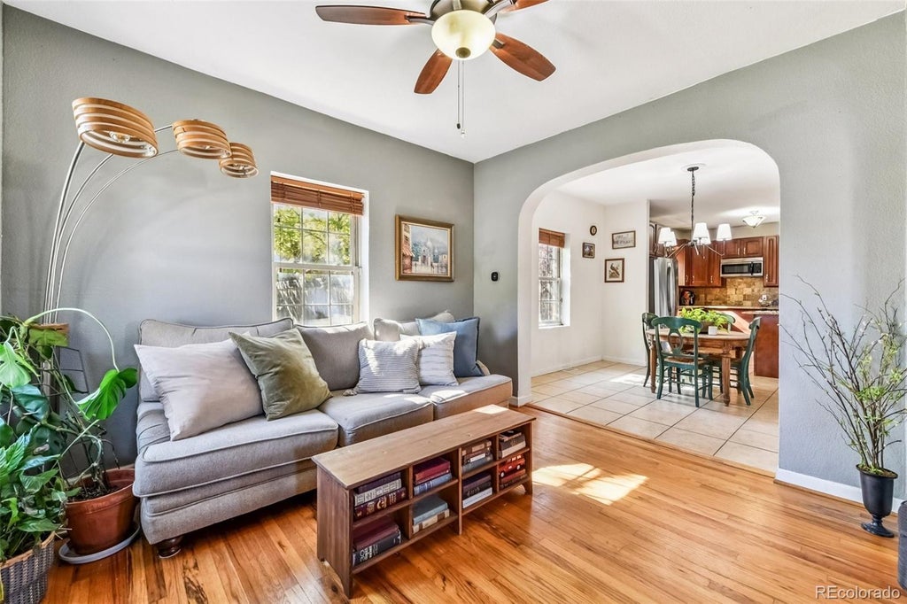 Step into timeless charm with this Tudor-style home in North Park Hill! Nestled on a corner lot, this 4-bedroom/3-bathroom residence is full of character, offering hardwood floors, arched doorways, and a wood-burning fireplace that anchors the living room. The open-concept layout connects the living, dining, and kitchen areas, creating a warm and inviting space. The kitchen is both stylish and functional, featuring stainless steel appliances and granite countertops. The main floor includes two spacious bedrooms and a full bathroom. Upstairs, discover a unique space that can serve as a third bedroom with en-suite bath, or the perfect reading nook, creative studio, or lounge area. The finished basement offers a true retreat: a spacious primary suite with a massive walk-in closet, en-suite full bath, and a thoughtfully designed laundry room with built-in shelving. Outside, enjoy a large fenced backyard with a quaint patio, and a 2-car detached garage with gate and private driveway for additional off-street parking. Perfectly located, this home puts you at the center of it all—just minutes from Central Park, The Shops at Northfield, Denver Zoo, Denver Museum of Nature & Science, City Park & Golf Course, and more. With easy access to I-70, commuting and exploring the city is a breeze. This Tudor gem combines historic character with modern updates, offering a home that’s as practical as it is beautiful! Sellers offering $5,000 concession towards new carpet for the house.